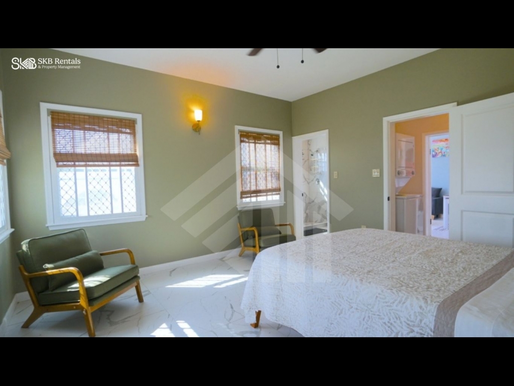 The spacious bedroom features multiple windows that invite in natural light and cooling breezes, and includes a well-appointed ensuite bathroom for added privacy and convenience.