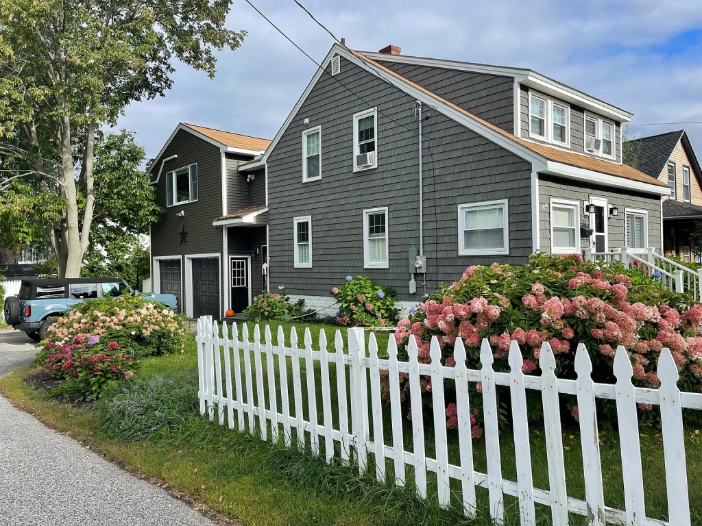 This fully furnished house offers an updated eat in kitchen, stainless appliances, gas stove and tons of space to prepare meals. The kitchen opens up to a dining space, office nook, and living room with large comfy sofas and a flat screen TV with streaming capabilities for move nights, and a half bathroom! Upstairs, find three bedrooms and a newly renovated bathroom with a sleek tiled shower. Two queen bedrooms, and one twin, which could double as an additional work space. Ultra comfortable mattresses, plenty of clothing storage. Other amenities include, garage parking, private porch and shared yard with a large deck, washer and dryer, (shared with adjoining apartment). Hard wood floors throughout, sunny windows and great natural light.