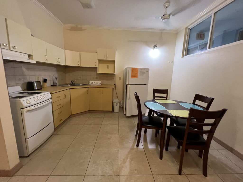Included is solar water heater providing hot water to all taps., A/C in each bedroom, and private bathroom for each bedroom. Desk and chair included in each bedroom along with curtains. All beds full size. Ceiling fan in living room, flat screen TV, microwave, refrigerator, stove, dining & kitchen ware, pots & utensils. Laundry facility with washer & dryer combo in each unit. Back up generator on site. Rent includes water and internet. Tenants responsible for electricity.