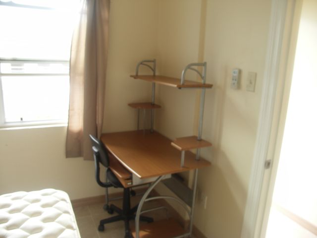 Included is solar water heater providing hot water to all taps., A/C in each bedroom, and private bathroom for each bedroom. Desk and chair included in each bedroom along with curtains. All beds full size. Ceiling fan in living room, flat screen TV, microwave, refrigerator, stove, dining & kitchen ware, pots & utensils. Laundry facility with washer & dryer combo in each unit. Back up generator on site. Rent includes water and internet. Tenants responsible for electricity.