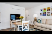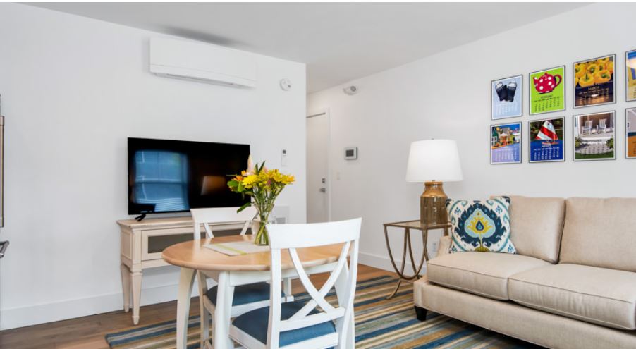 Each one of our 48 Wilmot Street apartments is unique, modern, clean and features a highly functional open floor plan… A-21 is no exception. This one bed, one bath fully furnished apartment comes with granite countertops, hardwood and tile floors, a radiant heated bathroom floor, an air purification system, air conditioning, and a beautifully dressed queen size bed. The exterior space surrounding this apartment is equally as exquisite and provides you access to a shared balcony and lush courtyard with ample seating.