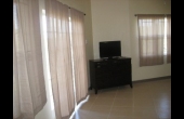 Two bed 2 1/2 bath unit. It has a full kitchen, dining + living room with patio and half-bath downstairs. The laundry room and two bedrooms and two bathrooms are upstairs. There is a patio off the front bedroom as well. All bedrooms have a/cs and ceiling fans. The living and dining areas have 3 fans as well. The bedroom drapery is heavy + sound and light canceling. Entry is by remote gate access and the garden is very secure. The parking area is well lit and the perimeter of the property has security lighting.