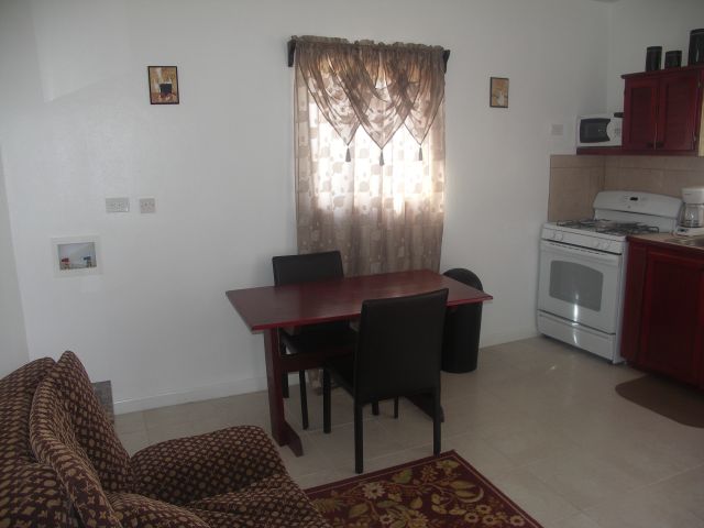 Rent includes water and laundry facilities. Tennant responsible for cable, internet and electricity. Government electricity deosit will be required ($500.00 USD, Landlord will take you to the department to sign).BYOL = Bring your own linen.One Full size bed provided.SCHOOL BUS PICK UP STUDENT IN FRONT OF APARTMENT.