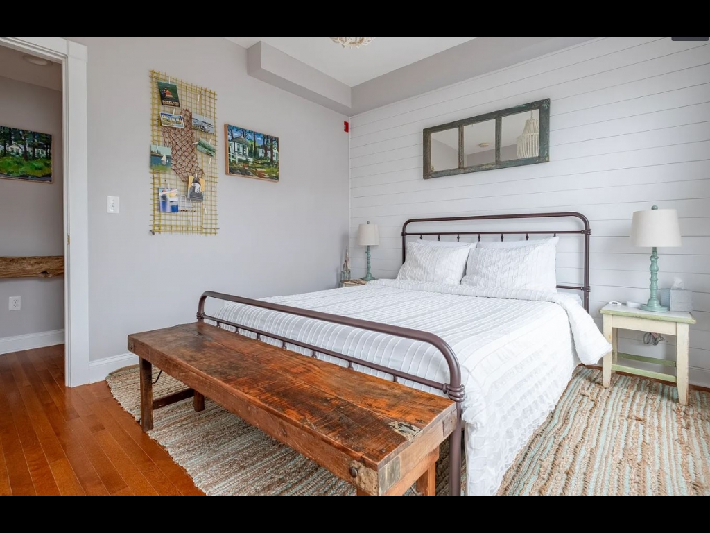 Two bedroom condo located in Portland's East End, at the top of Munjoy Hill. Each bedroom has its own bathroom, so you'll have plenty of privacy. The space features a fully equipped kitchen, a comfortable living room with streaming access, and a covered patio. The kitchen is fully equipped, and there are plenty of great restaurants close by. The living room is a comfy place to relax with streaming access on a big TV. Plus, you'll love the views from the covered patio. Includes one off-street parking spot, all utilities, WiFi, snow plowing, towels, and linens for a worry-free stay.