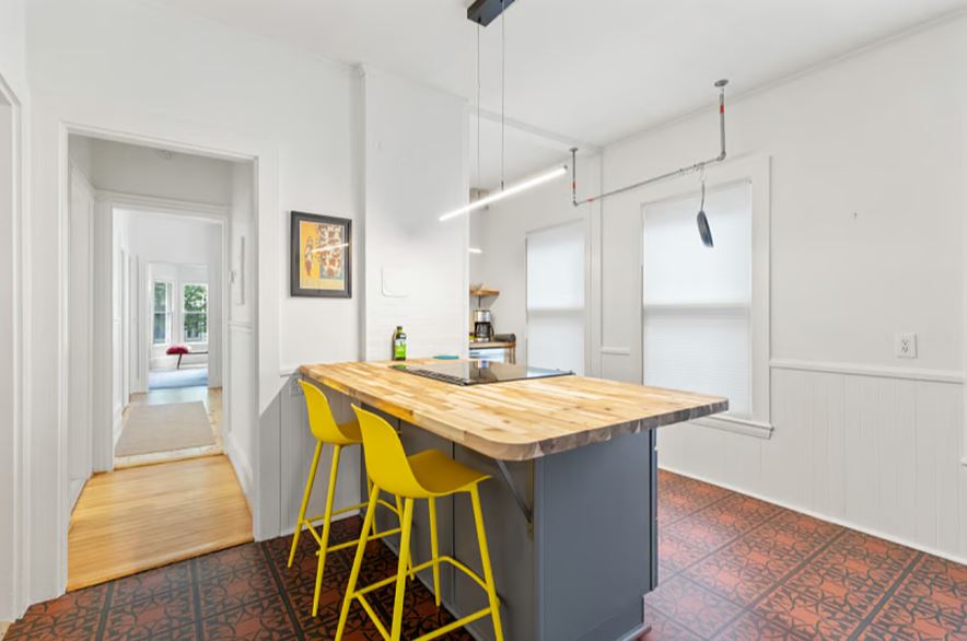 Enjoy complete access to the entire 1st floor of this newly renovated West End flat. Spacious 2 bed with 2 full baths! Upstairs is one long term tenant, but you each have keyless private entrances. Parking for 2 vehicles is included. Driveway accommodates two cars, but many walkable amenities are in this lovely neighborhood: coffee, restaurants, shops, yoga and the arts!
