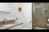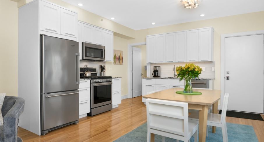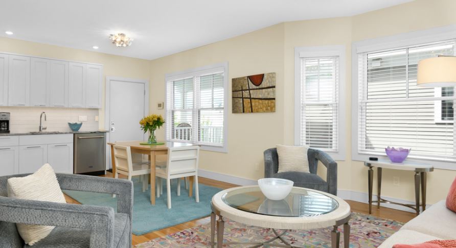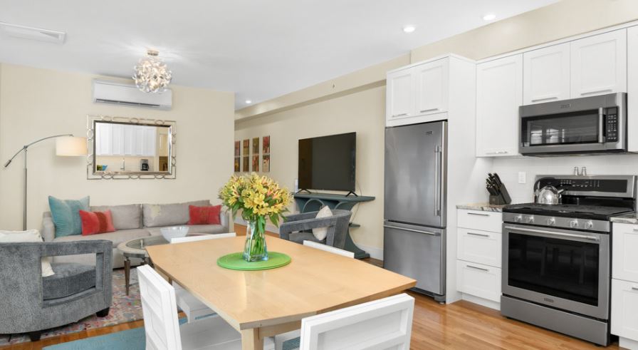 This two bed, one bath Wilmot Street apartment is modern, clean and features a highly functional open floor plan. Located on the second floor this unit has access to its own private deck overlooking the shared courtyard, and the added benefit of a private laundry room with plenty of space for additional storage. The apartment also comes with stainless-steel appliances, granite countertops, hardwood and tile floors, a radiant heated bathroom floor, an air purification system, air conditioning, and two beautifully dressed queen size beds.